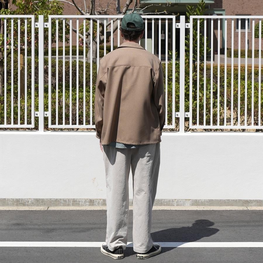 シルエットは腰回りからゆとりを持たせ、裾までストンと落としたワイドパンツです。ただ裾上げいらずのレングスに設定しているので、太目ですがスッキリしており、幅広いスタイルに対応してくれます。素材には10ウェルの太畝のコーデュロイを仕様。適度な光沢感とハリがポイントで、カジュアル過ぎずキレイ目な印象が特徴です。上品な雰囲気のコーデュロイはキレイ目なアイテムにもビンテージ感のある古着のようなアイテムとも相性が良く、幅広いコーディネイトで活躍してくれます。