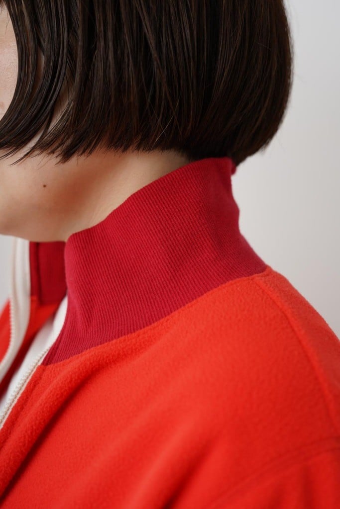 肌触りが柔らかく厚すぎず薄すぎない程よい肉感と軽さが特徴の素材です。通気性にも優れているので、洗濯後の乾燥はもちろん汗の発散も早いので秋は一番上に、冬はインナーとしても重宝する素材です。スタンド衿、ジップアップのデザイン。