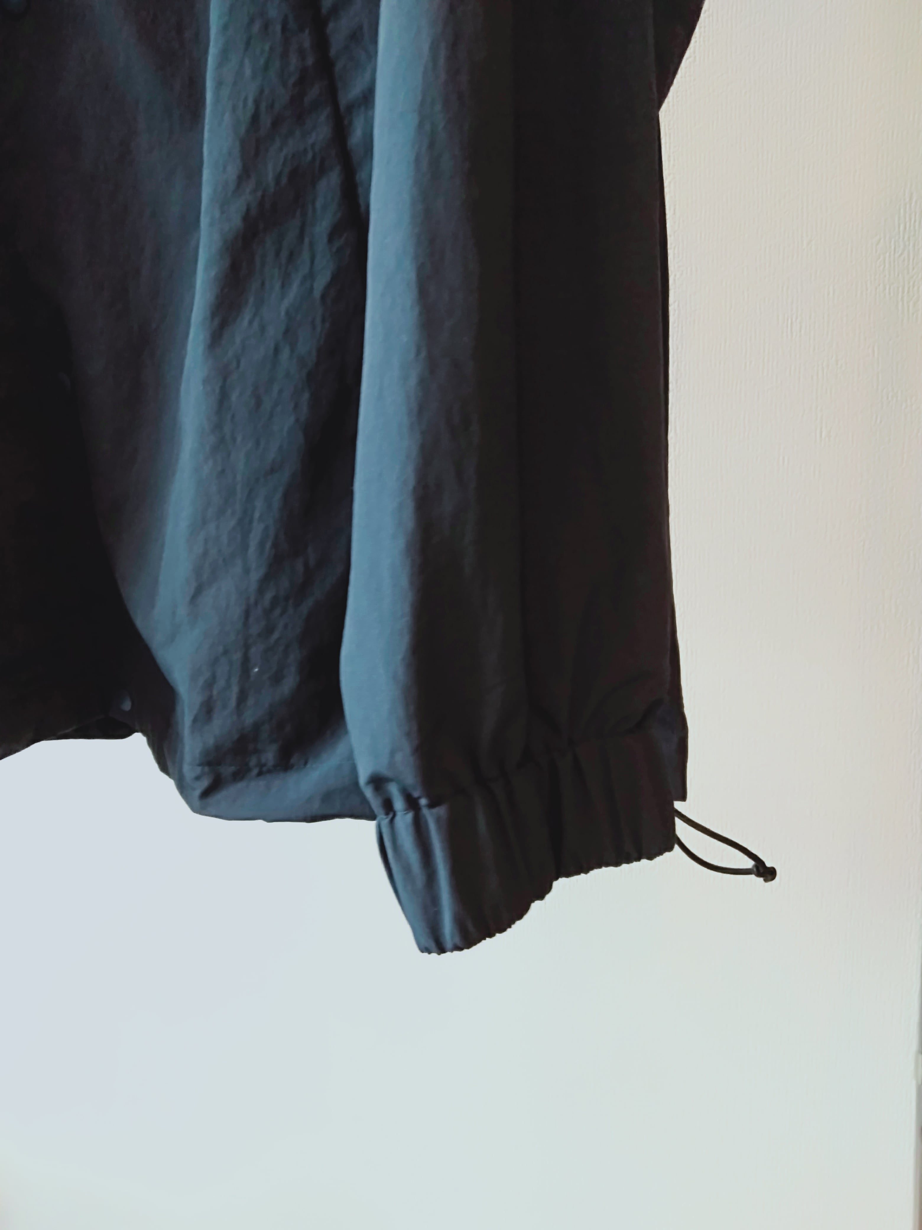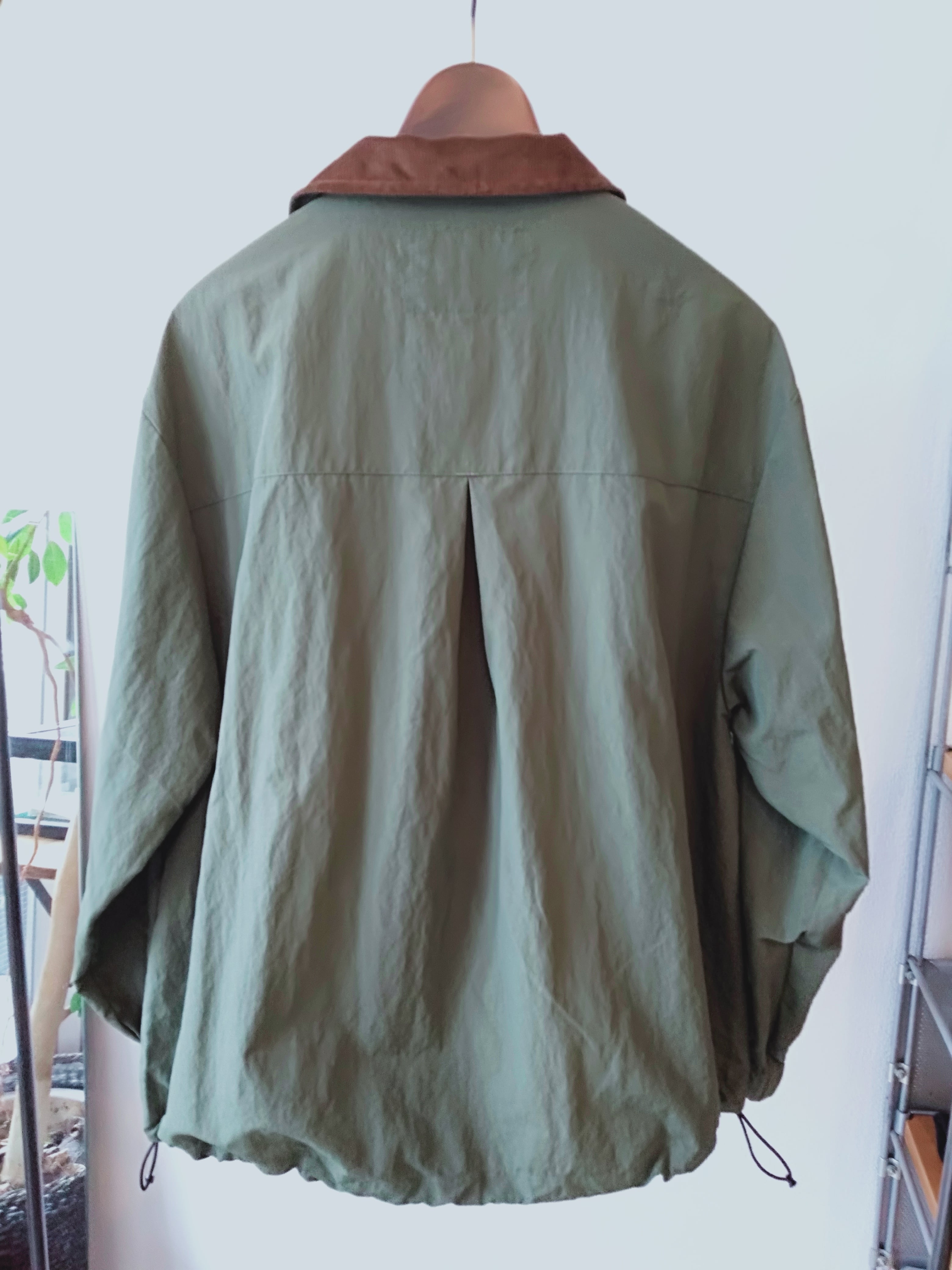 クラッシックなデザインのコーチジャケット。衿の部分はコーデュロイを使い袖口はリブ仕上げ、裾にはドローコードが入っています。マットな質感の高密度ナイロンを使っていて、軽度な撥水性もあります。とても軽く秋の立ち上がり、春先にも使える便利なアイテムです。
