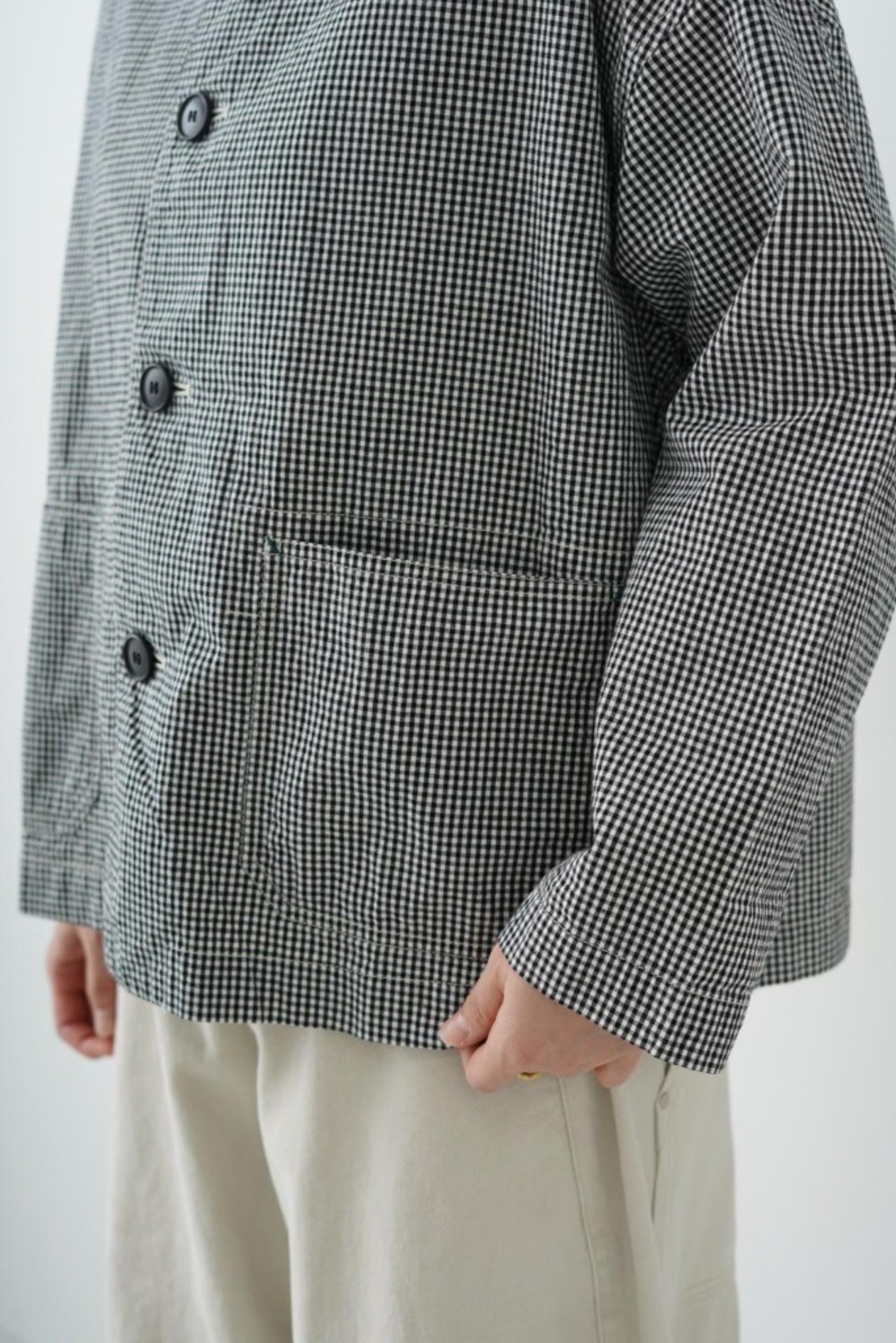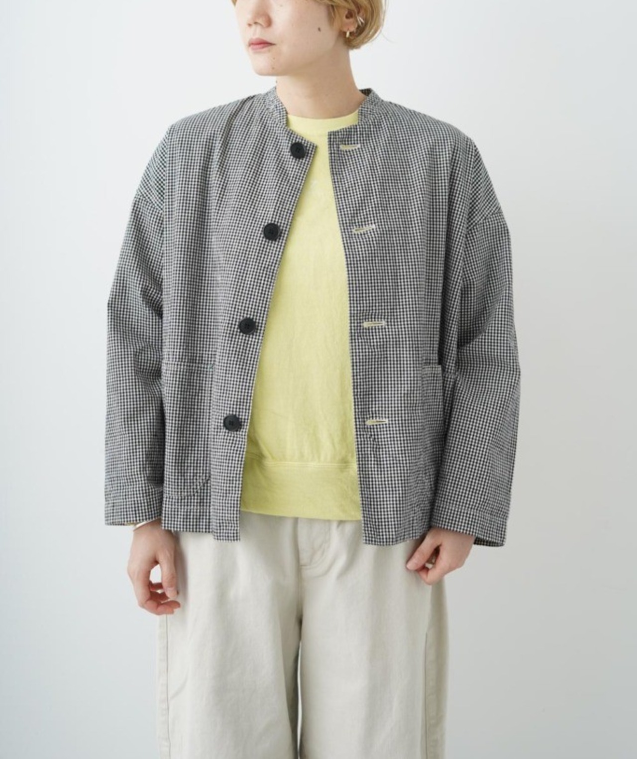 このジャケットは、カジュアルなコーディネートにも、きれいめなスタイルにも大活躍。フロントボタンとシンプルなポケットデザインが、どんなシーンでも馴染みやすく、使い勝手の良さを実現しています。特に、軽やかな着心地と柔らかな肌触りが魅力で、デイリーユースには欠かせない存在となることでしょう。