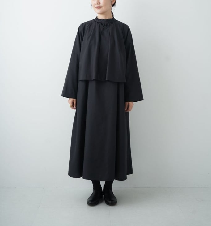 こちらは、しっかりとしたこだわりの素材で作られており、軽量なのに暖かさを感じられるため、寒い季節でも活躍します。流れるようなラインは体型を美しく見せてくれ、動きやすさも兼ね備えています。カジュアルなスタイルからきれいめなスタイルまで、このポンチョジャケットひとつでシーンに合わせたコーディネートが実現可能です。是非、同素材のワンピースとセットアップでお持ちください。