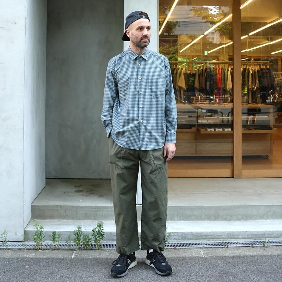 顔料染めのコットンリップストップ素材を使用したイージーパンツ