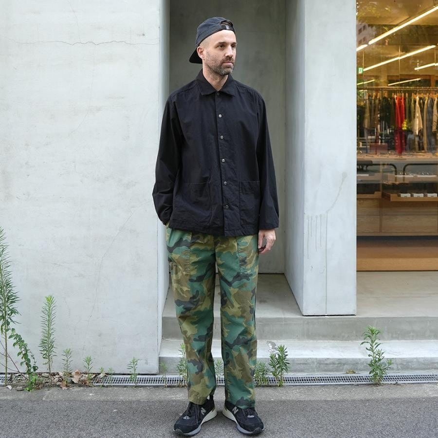 素材は染料と顔料で染められており(迷彩柄は顔料プリント)、洗うたびにフェード感のある味わい深い風合いが楽しめます。