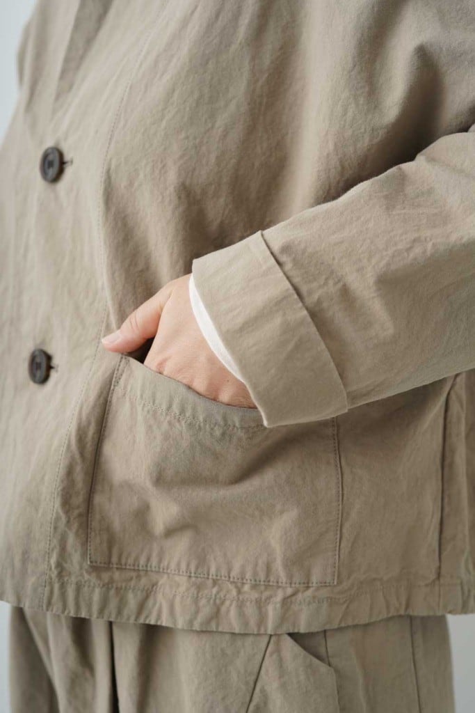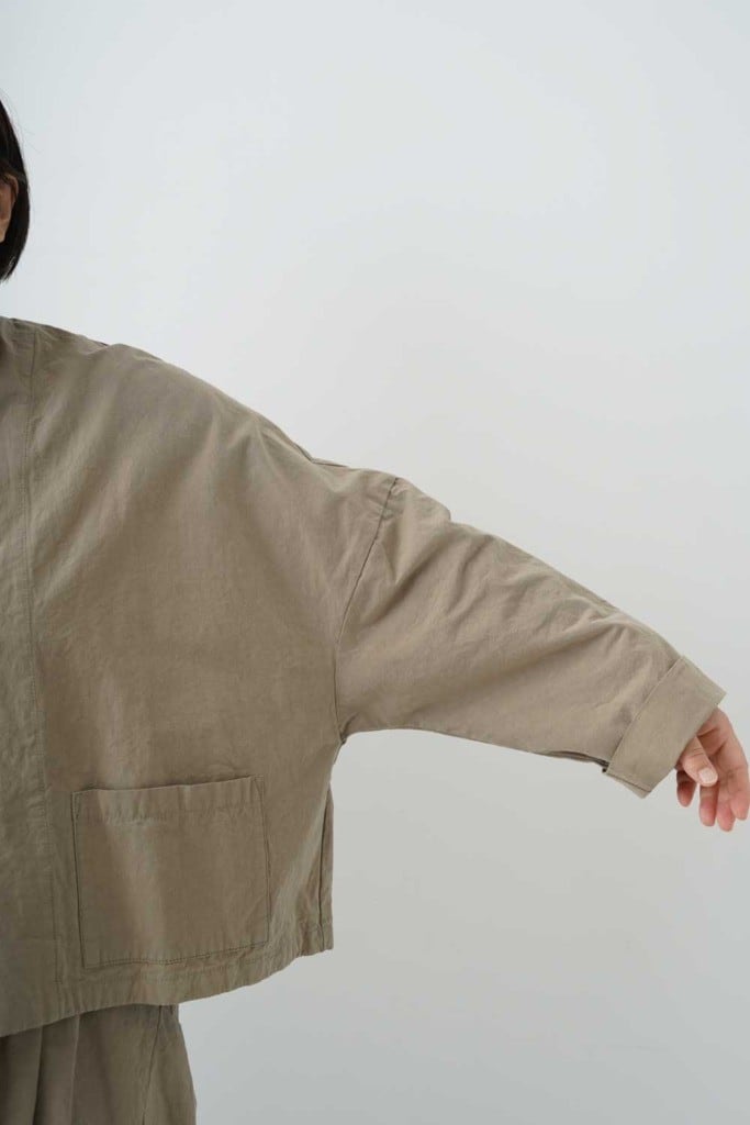 綿麻特有のシボシボとした表情がナチュラルな素材感を際立たせ、柔らかな色合いが大人らしい新たにデザインされたボレロジャケットです!軽やかなCLシーチング素材を使用し、優れた通気性とさらっとした肌触りが特徴。シンプルでありながら、上品な雰囲気を醸し出すデザインが魅力です。肩から自然に落ちるラインは、リラックスしたシルエットを作り出し、どんなスタイルにもマッチします。普段使いはもちろん、ちょっとしたお出かけにもぴったりなアイテムです!さまざまなコーディネートに合わせやすく、カジュアルからフォーマルなスタイルまで幅広く活躍します。羽織るだけで、コーディネートの印象を変えることができる一着です。春夏秋のシーズンに重宝すること間違いなしのボレロJKをぜひお楽しみください。上品さを引き出します。セットアップの着用もオススメです。
