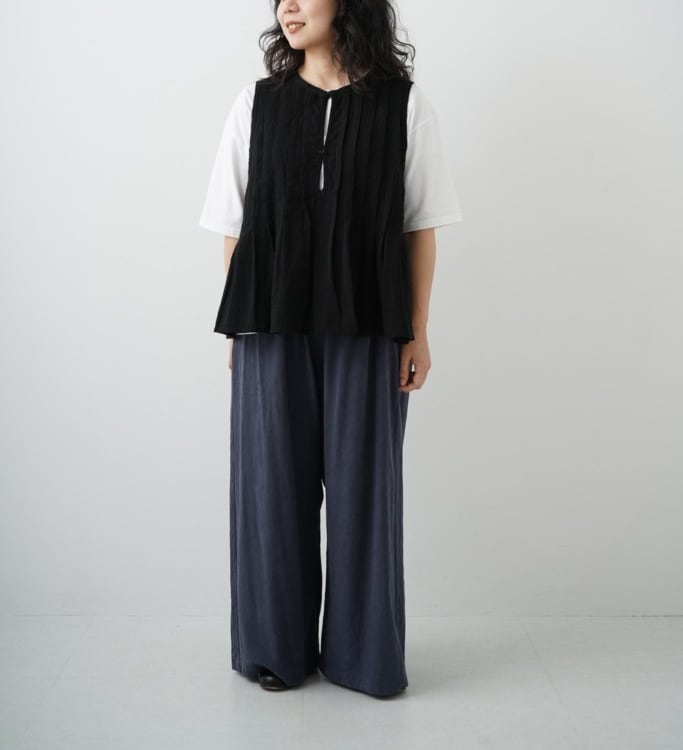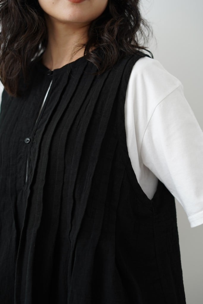 クルーネック、PO、前身にピンタックを施したデザインは軽やかさと動きやすさが特徴です!体に優しくフィットするデザインは、リラックスしたシルエットを演出し、どんなスタイルにもマッチします。豊かな表情を持つコモドクロス素材が、上品で華やかな雰囲気を引き出し、お出かけや特別なシーンにもぴったりな一着です。シンプルさの中にも洗練されたディテールが施されており、コーディネートの幅を広げてくれること間違いなしです。デイリー使いからオケージョンまで、様々な場面で活躍することが期待できます!同素材のギャザースカートとセットアップで着るのがオススメです。