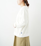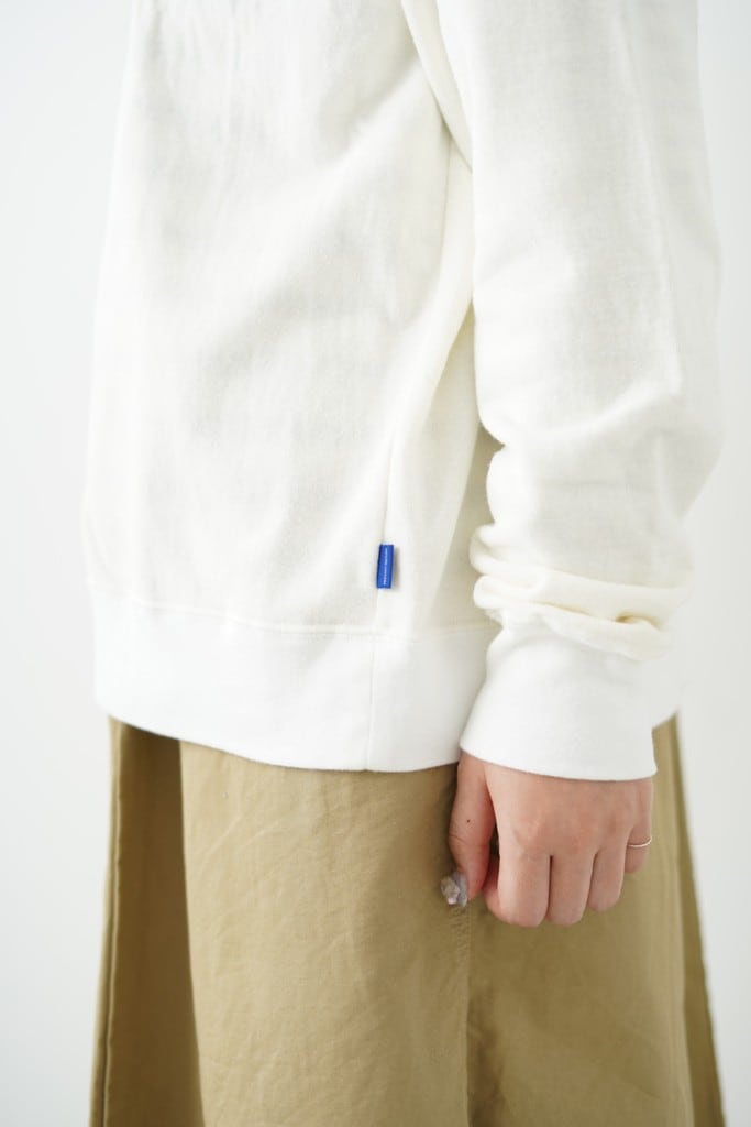 表糸に綿麻の糸を使用した裏毛です。麻特有のシャリっとした表面感が特徴。綿麻素材を製品染めすることによってヴィンテージスウェットのような独特の風合いが出ています。軽やかで程よい柔らかさがあるので着心地も良いです。クルーネック、ボタンフライのカーディガン。シンプルでありながらも、上品さと着心地を追求した一着です。柔らかな裏毛素材が肌に優しく、リラックスした着用感を実現しています。両Vネックデザインは、顔周りをすっきりと見せてくれ、女性らしい印象を与えます。袖口や裾に施されたリブが、カジュアルさと動きやすさをプラス。デイリーファッションのアクセントとして、様々なスタイルに合わせやすい、汎用性の高いアイテムです。
