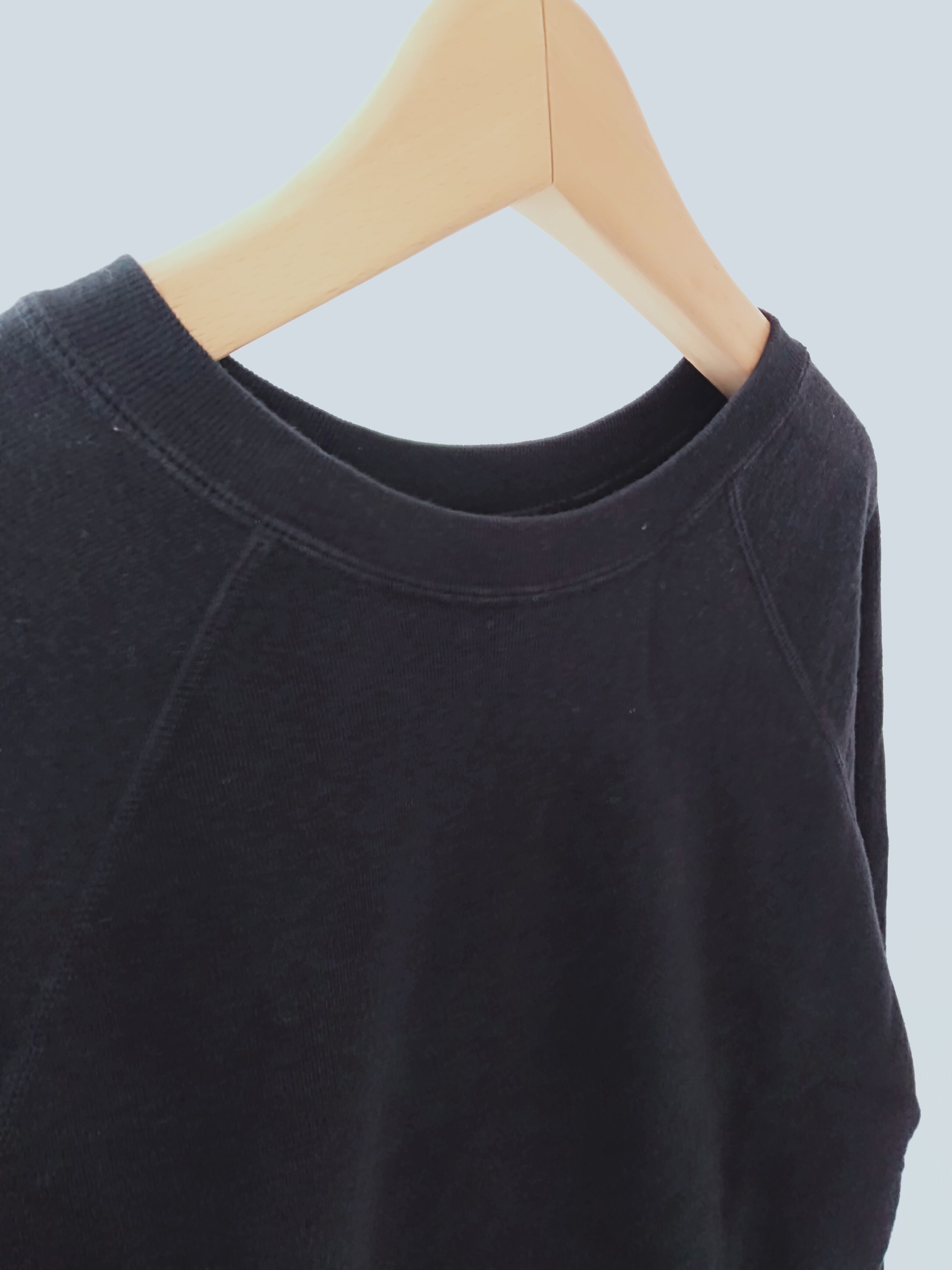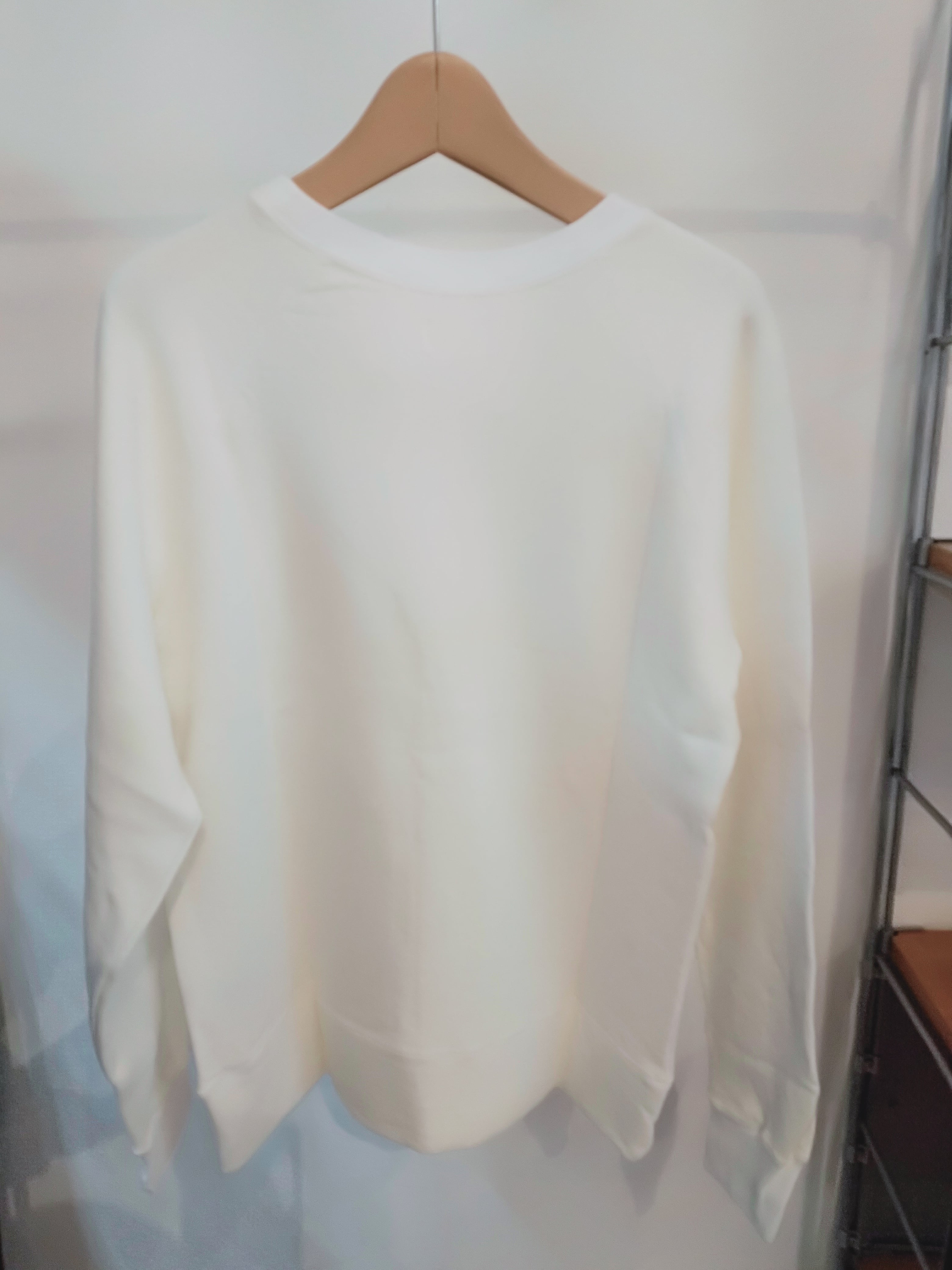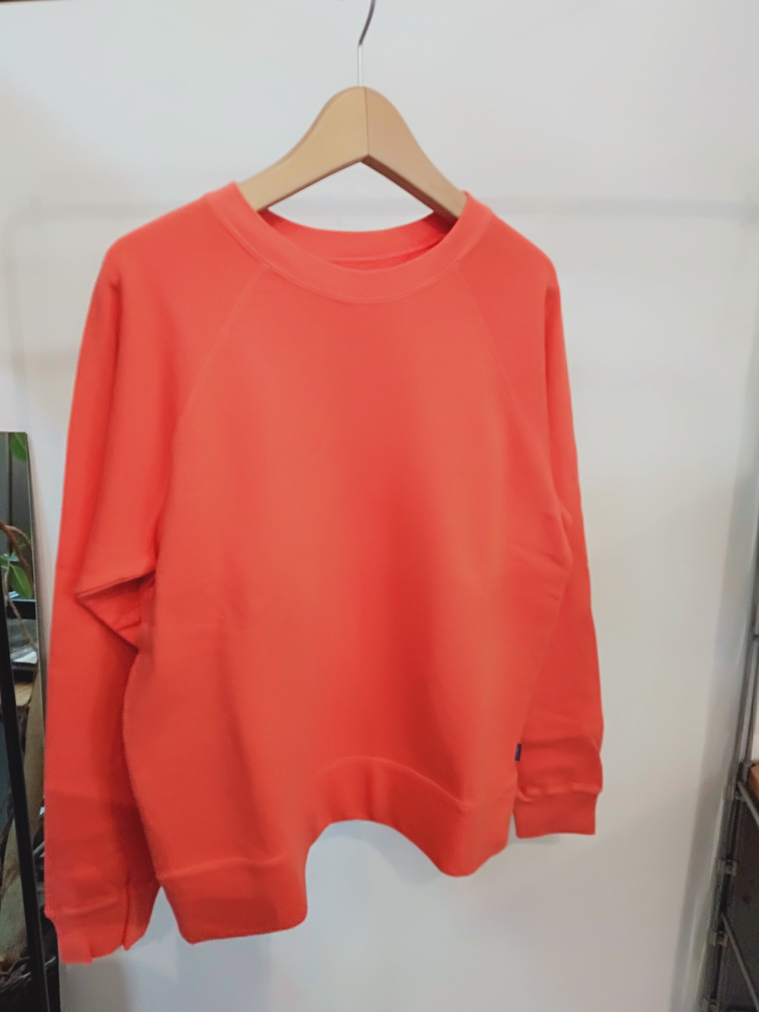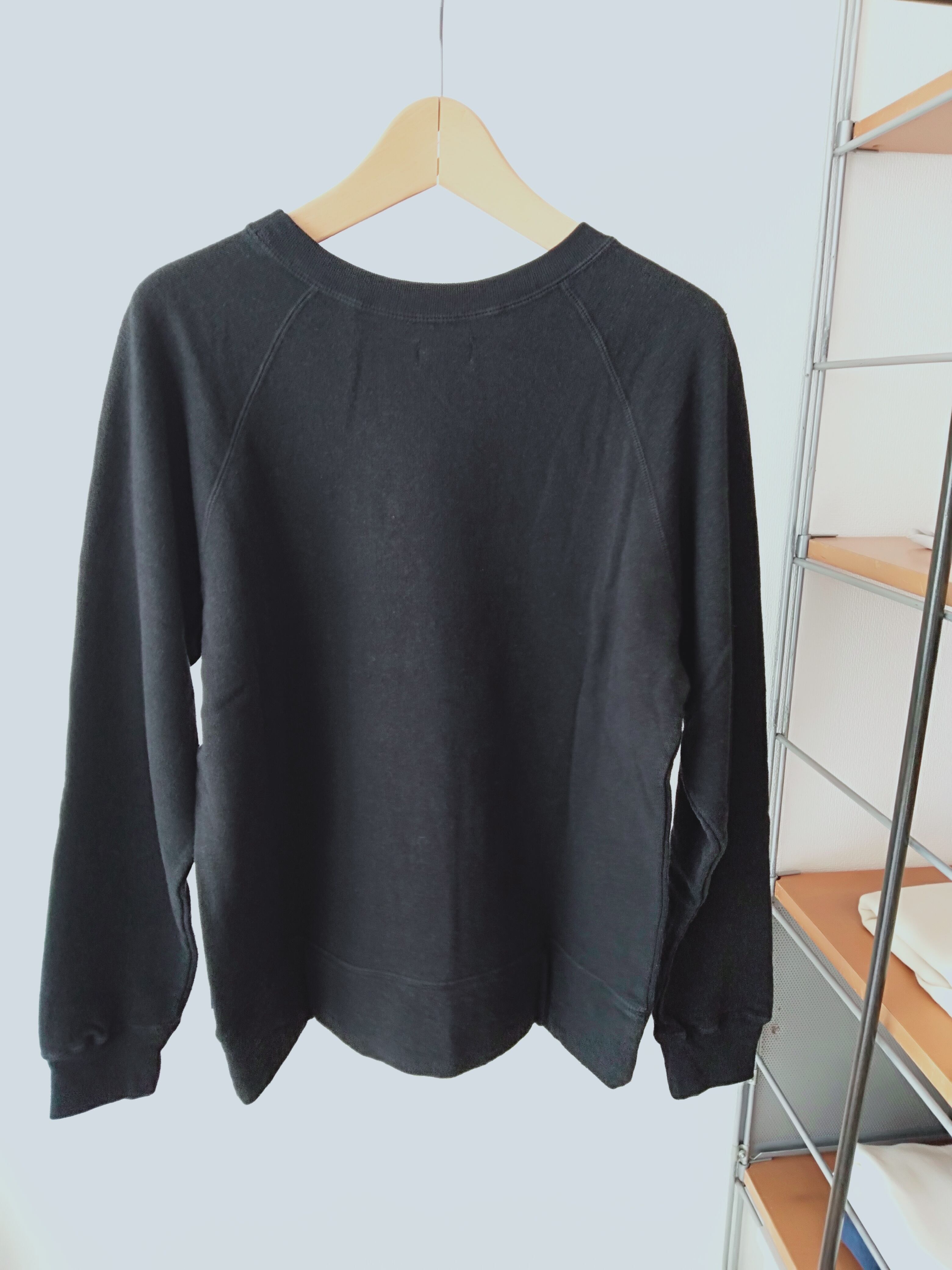 表糸に綿麻の糸を使用した裏毛です。麻特有のシャリっとした表面感が特徴。綿麻素材を製品染めすることによってヴィンテージスウェットのような独特の風合いが出ています。軽やかで程よい柔らかさがあるので着心地も良いです。クルーネック、ラグランスリーブのシンプルなPOスウェット。気持ちいい素材と大きすぎないサイズがgoodな一枚。