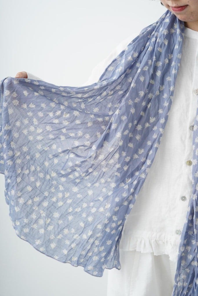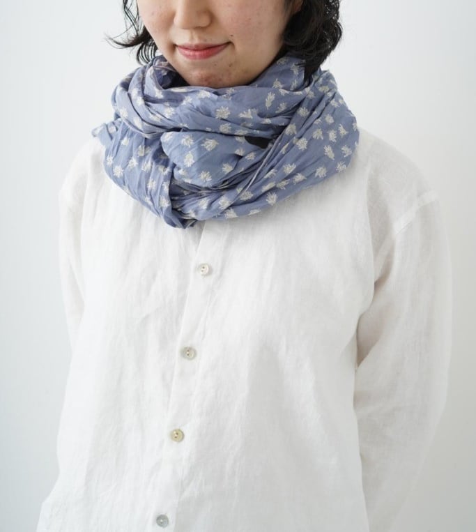 今シーズンのテーマ“fog“を反映させたgrinのオリジナルテキスタイルです。極細の糸で織った綿素材。透け感があり、涼し気な雰囲気です。リンクル仕上げのため、シワが気にならず持ち運びにも便利です。軽やかなシアー素材を使用したストールです。美しいフローラルプリントが施されており、シンプルなコーディネートに華やかさをプラスしてくれます。柔らかな肌触りと軽量感で、日常使いはもちろん、特別なシーンでも活躍するアイテムです。デザインは、どんなスタイルにも合わせやすく、ショッピングやデート、オフィスシーンにも最適。優雅で女性らしい雰囲気を演出し、あなたのファッションを引き立てます。また、巻き方次第でさまざまな表情を楽しむことができ、アクセサリー感覚でお使いいただけます。