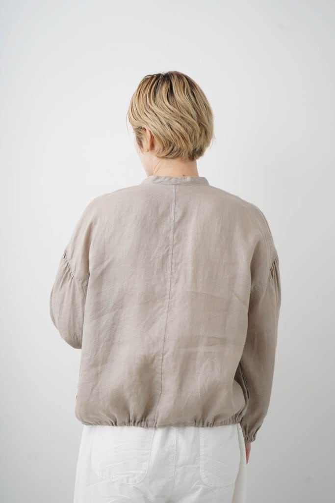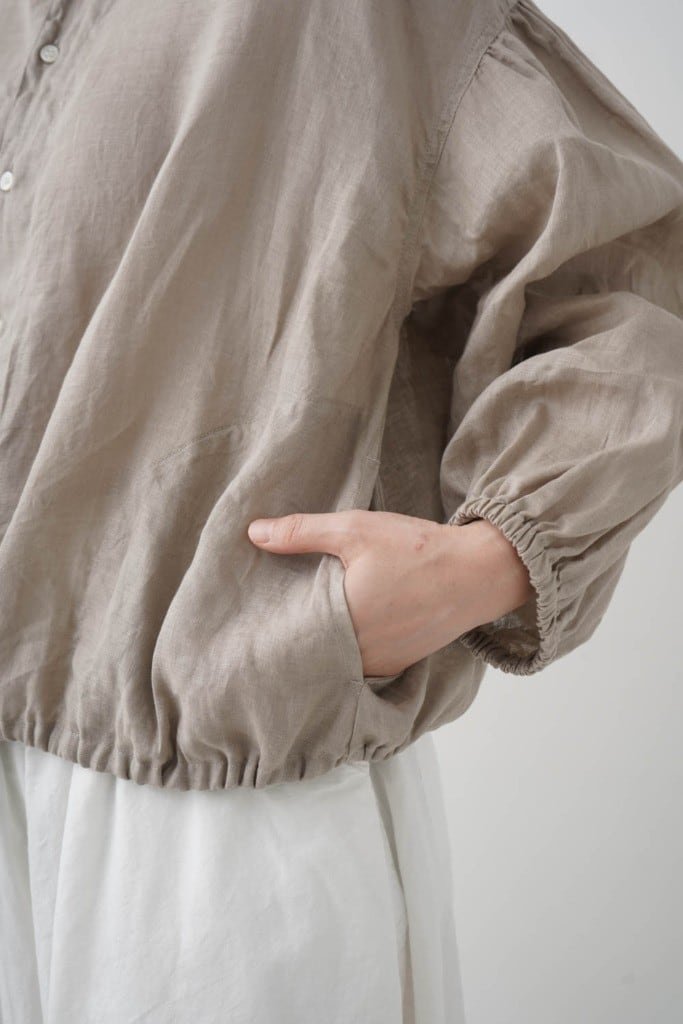 新素材。暑い夏にピッタリな薄地のリネン。自然な風合いのリネン素材を使用した、レディース60リネンドロステシャツカーディガンです。軽やかな着心地が心地よく、日常使いに最適なアイテムです。ゆったりとしたシルエットがリラックス感を演出し、シャツとしてもカーディガンとしても使える便利な一枚となっています!シンプルながらも洗練されたデザインは、カジュアルからキレイめスタイルまで幅広くコーディネートを楽しむことができるアイテムです。風通しが良く、涼しい素材感が魅力のこのカーディガンは、特に夏場の重ね着に最適です。リネン特有の自然な風合いとドロップショルダーのデザインが、リラックスした印象を与えつつも洗練されたムードを演出します。また、軽量で持ち運びがしやすいため、外出時のさっと羽織るアイテムとしても重宝します!スタンド衿、前開きのカーディガンシャツ。パフスリーブのような袖、裾に紐が入ったドローストリング仕上げのデザイン。サイドにポケットも付いています。パンツは勿論、スカートにもオススメです。