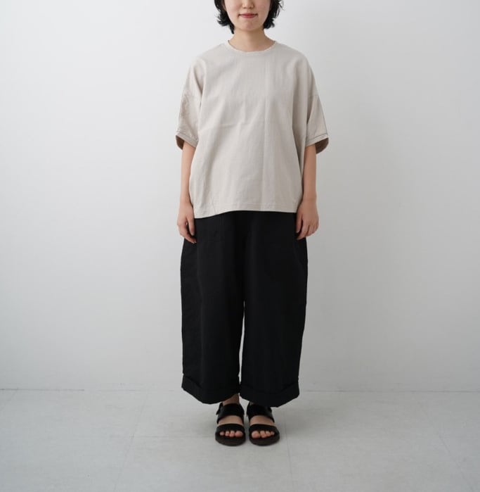 強撚のコットンを特殊紡績した度詰天竺です。ドライタッチな肌触りとヴィンテージ感のある風合い、やや薄手ながらもハリ感があり肌離れするので夏にオススメです。自然な風合いで快適な着心地を叶えるのが、natural laundryのライト度詰ワイドドルマンTシャツです。軽やかな素材感が印象的で、日常使いにぴったりなアイテムとして強くおすすめいたします。ドルマンシルエットがリラックス感を演出しつつ、スタイリッシュさも兼ね備えたデザインが魅力的です!シンプルながらも存在感があり、カジュアルからキレイめスタイルまで幅広いコーディネートが楽しめるのが嬉しいポイントです。自由な動きをサポートするゆったりとしたシルエットは、どんな体型の方にもリラックスしてご着用いただけます。こだわりの素材で、季節を問わず快適に着用できる一枚ですので、ちょっとした外出にもさらっと印象を高めてくれる頼もしいアイテムとなっています!